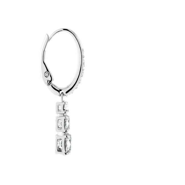 By its very nature eternal love must have a past, a present, and a future, and this pair of stunning pierced earrings has been conceived with that romantic concept in mind. A trio of clear crystals are embellished with pavé and rhodium plating in this scintillating design. Timelessly elegant, they will be a treasured keepsake. A matching necklace and ring are available.