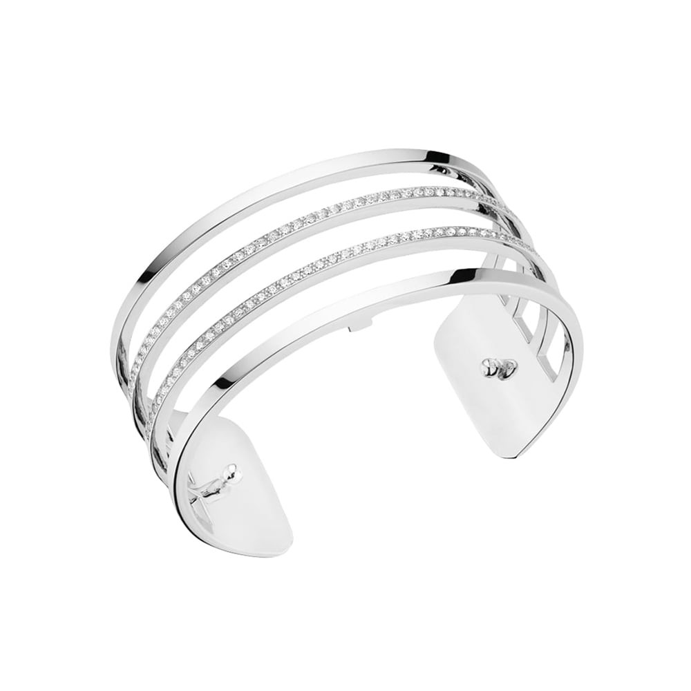 Shine bright with this bracelet, the perfect finishing touch to your outfit. Personalise your 25 mm bracelet, set with cubic zirconia, in a silver finish, by adding a reversible leather insert (sold separately). Show your unique style by stacking bracelets together. Your customisable bracelet is not adjustable.