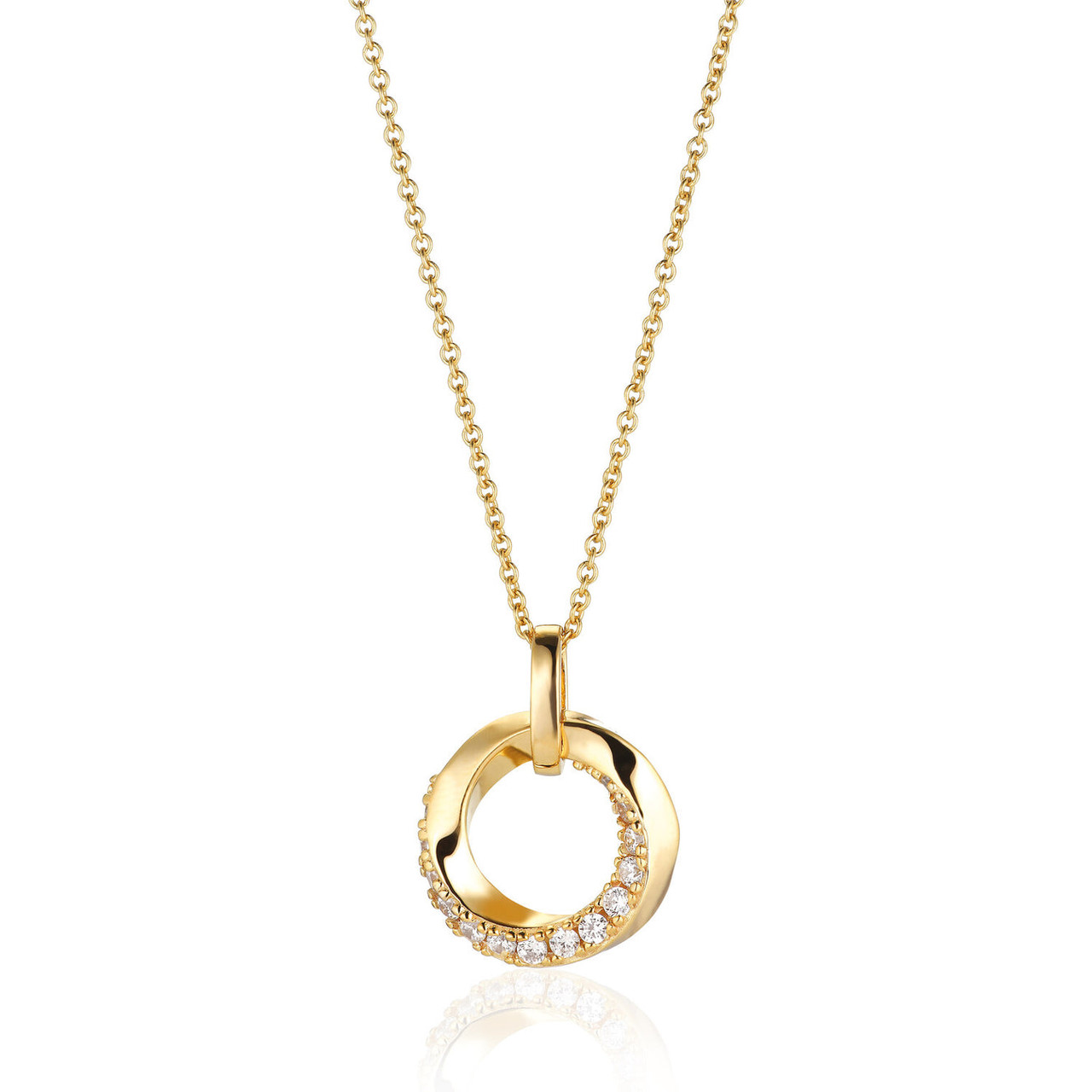 Pendant made of 18 karat gold plated 925 Sterling silver, polished surface and facet cut white zirconia.