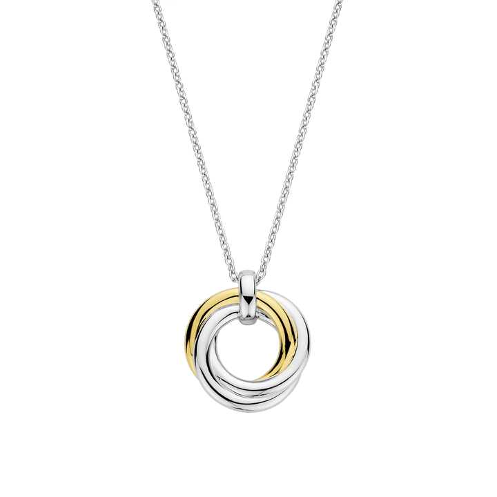 Indulge in the captivating interplay of textures with this TI SENTO gold-plated silver Necklace 34055ZY/42. Crafted from 925 sterling silver and plated with platinum for enduring brilliance, this statement piece features a large circular design composed of intertwined layers. Some layers are plated in lustrous yellow gold, creating a warm contrast against the cool silver of the rest. The intricate details and the contrasting textures make this necklace a true work of art. It's a perfect fusion of modern design and timeless elegance. Add that touch of escapism to your life and amp up your everyday look with this exceptional piece. Wear it alone for a bold statement or layered with other TI SENTO necklaces for a personalised touch. Crafted with care for sensitive skin, this nickel-free and hypoallergenic ring ensures lasting comfort and quality.