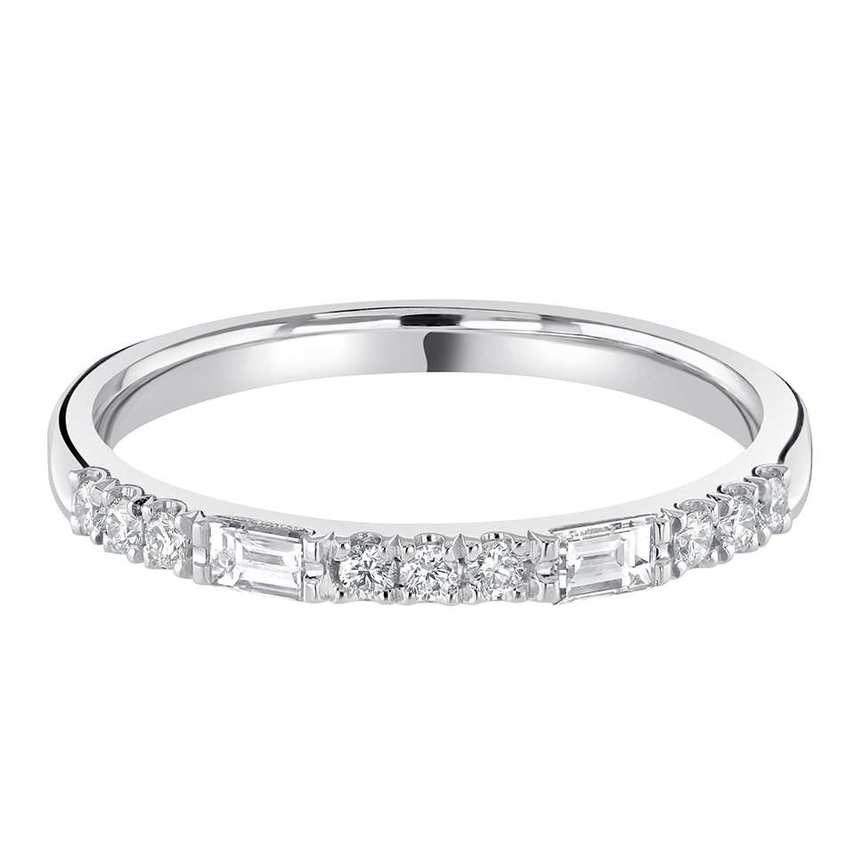 A diamond set decorative band featuring round and baguette diamonds.