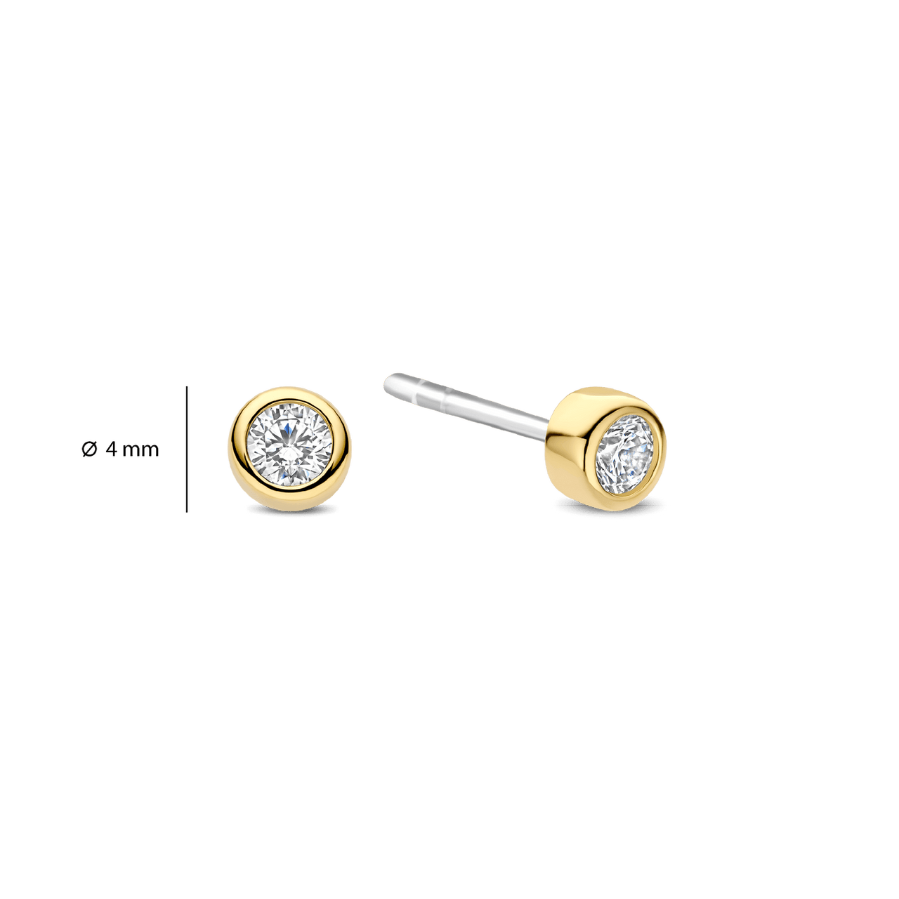 These Classic Zirconia Stud Earrings are crafted from high-quality 925 sterling silver and finished with an 18ct gold vermeil setting. The clear zirconia stone is placed in a round setting that provides a subtle, warm glow and a timeless appearance.